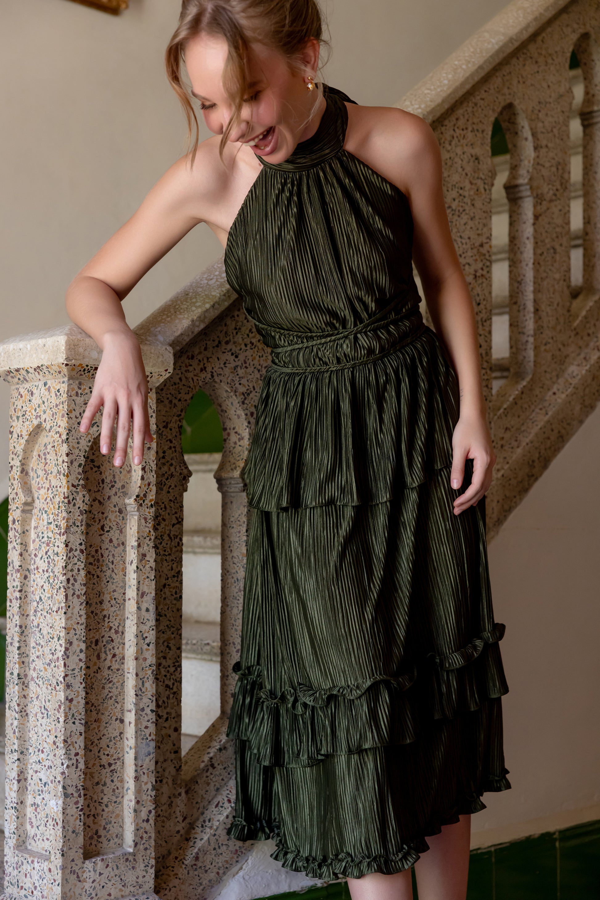 Hera Pleated midi skirt with ruffle detail and elastic waist