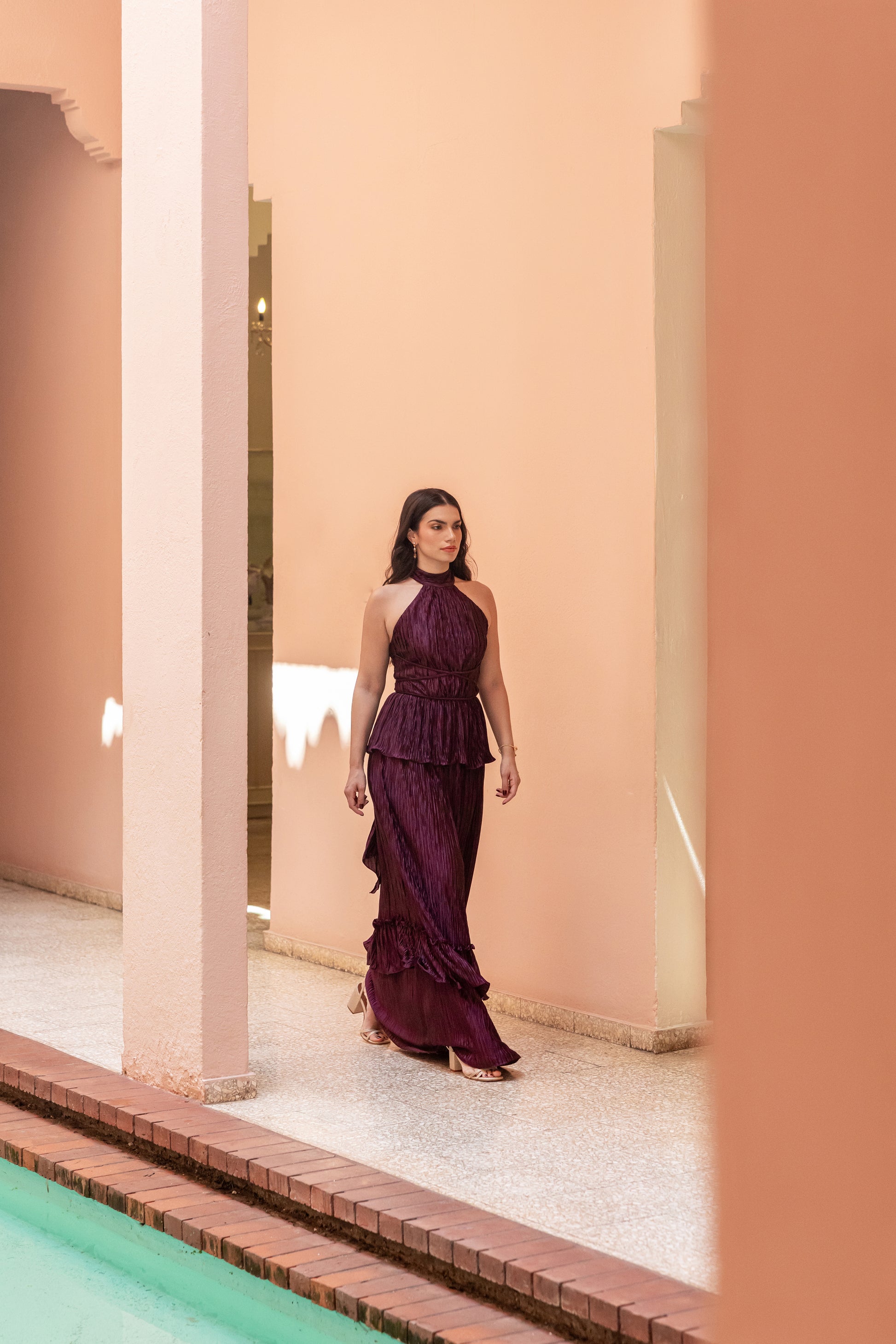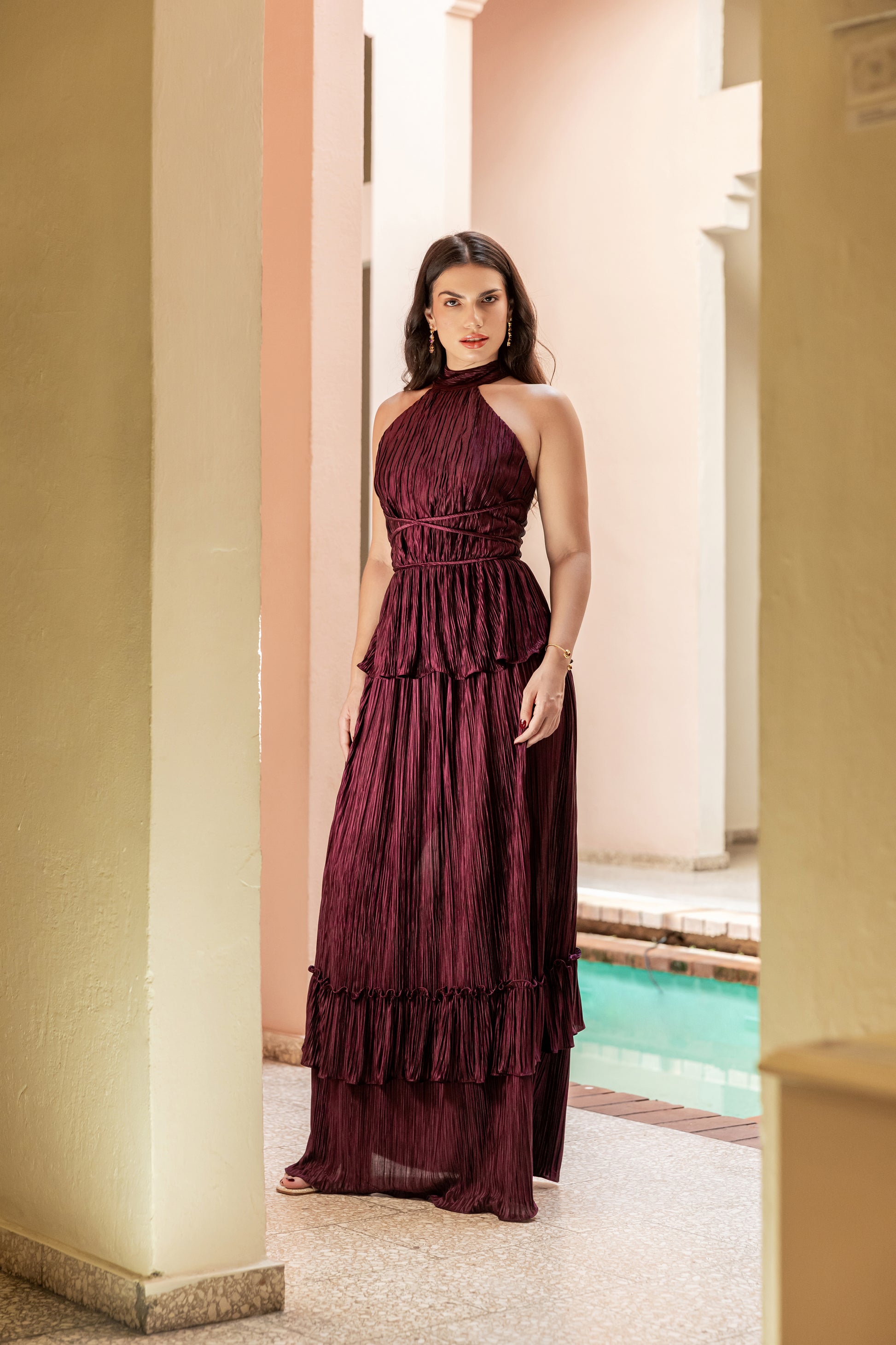 Pleated maxi skirt with ruffle detail