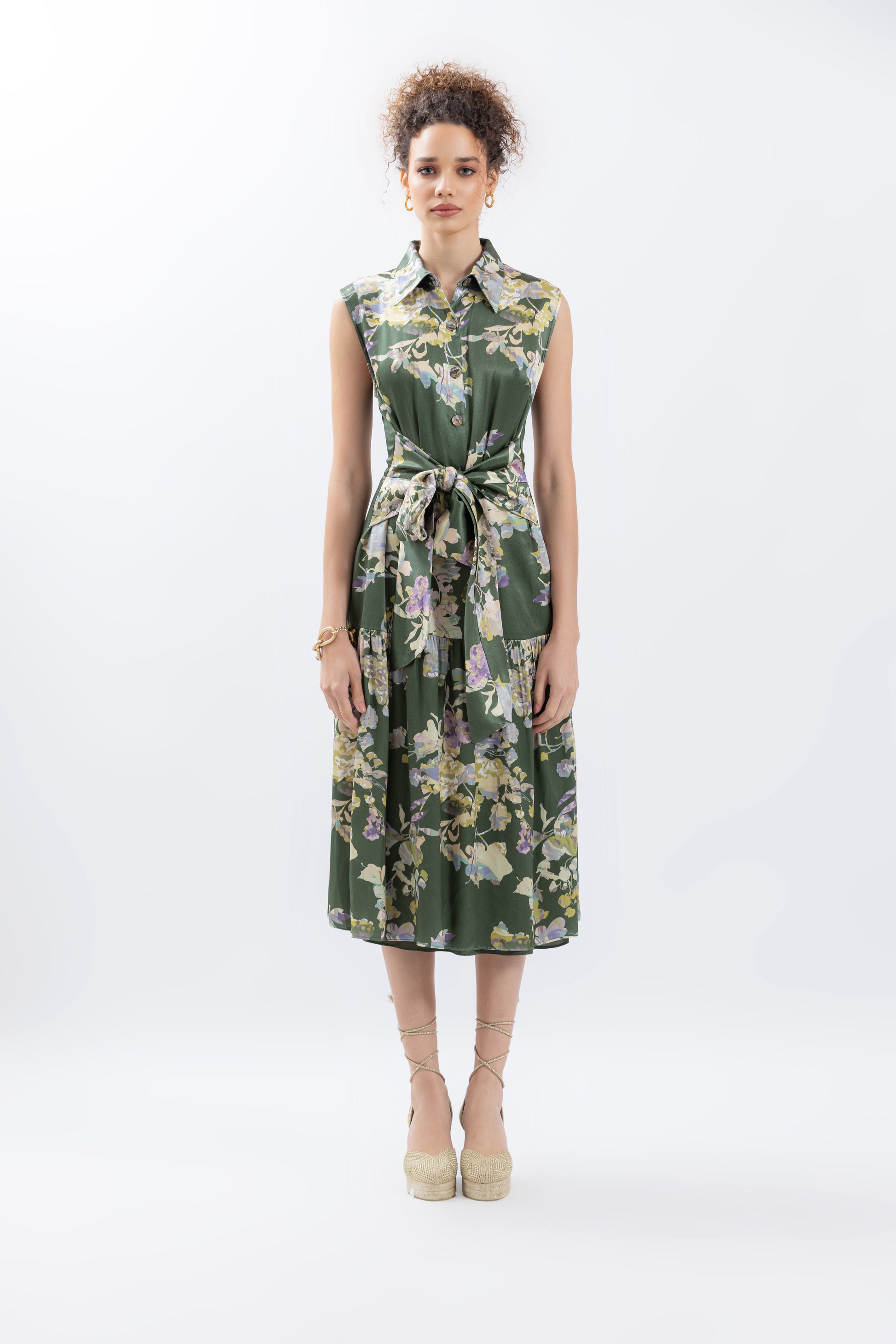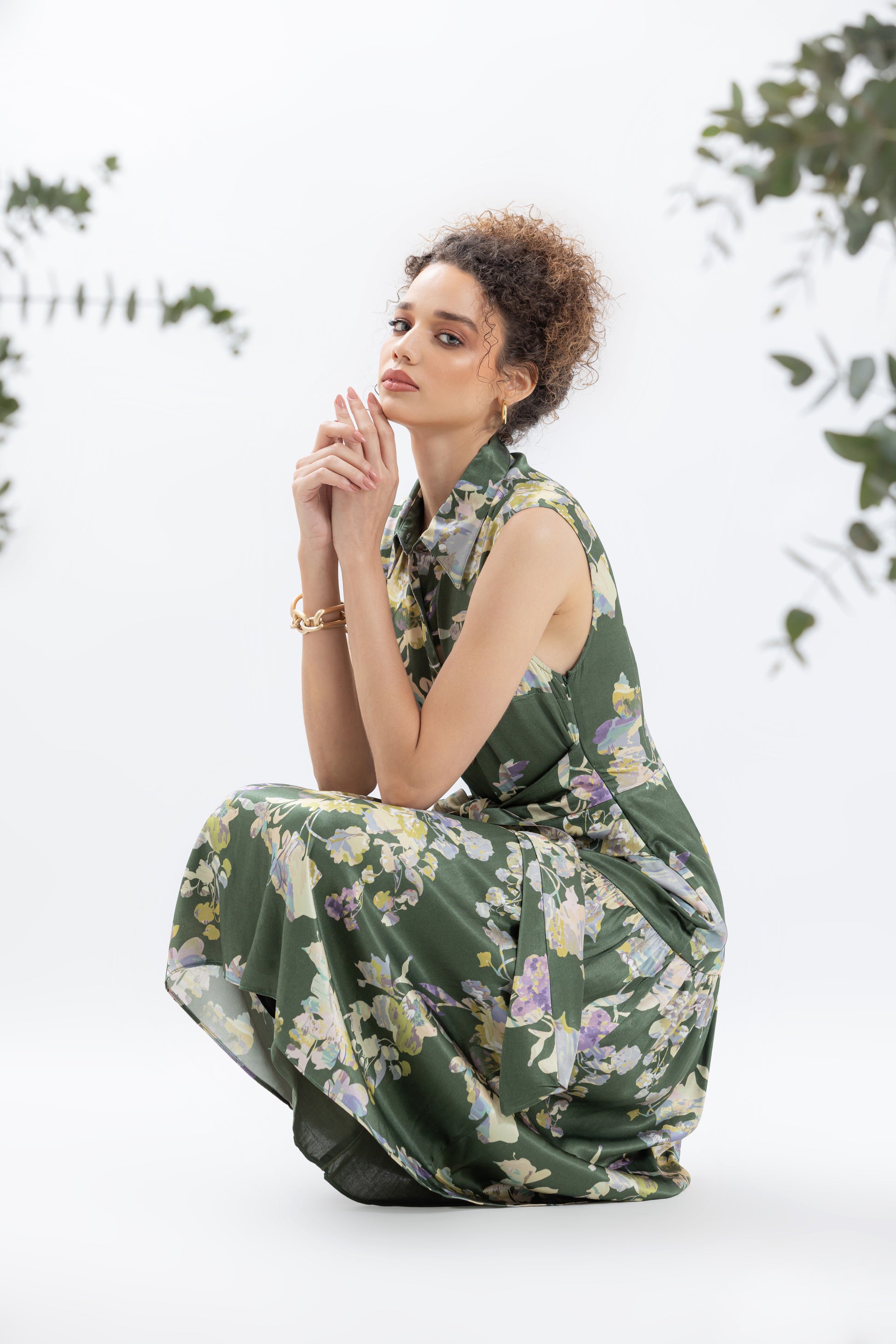 Veronica silk dress in our Natura print
